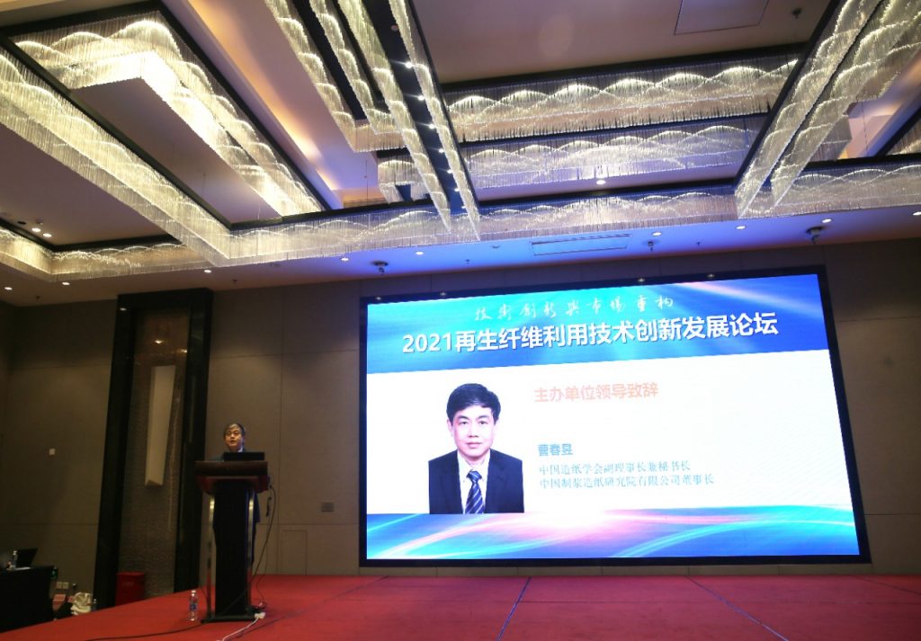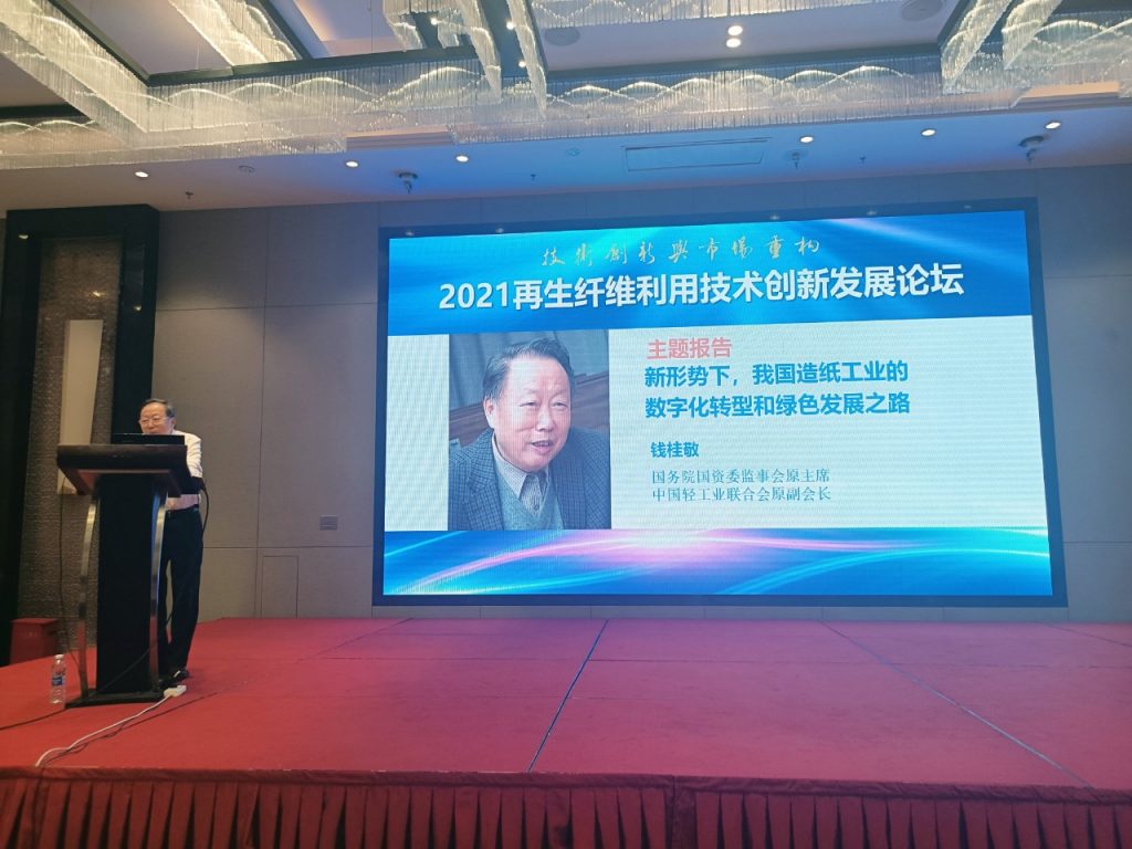 再生纖維利用技術專業(yè)委員會(簡稱:再生纖維專委會)秘書長梁川主持創(chuàng)新發(fā)展論壇開幕式,中國造紙學會副理事長兼秘書長曹春昱和鄭州運達造紙設備有限公司董事長兼總經理、再生纖維專委會主任委員許超峰分別為開幕式致辭;國務院國資委監(jiān)事會原主席、中國輕工業(yè)聯(lián)合會原副會長錢桂敬做了“新形勢下,我國造紙工業(yè)的數(shù)字化轉型和綠色發(fā)展之路”的主題報告;中國制漿造紙研究院有限公司中國造紙雜志社產業(yè)研究中心主任周在峰代表再生纖維專委會秘書處,介紹分享了《2020-2021年度我國再生纖維利用及裝備發(fā)展報告》。