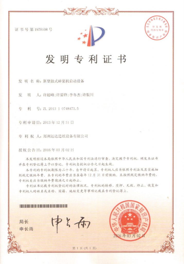 新型鼓式碎漿機(jī)啟動(dòng)設(shè)備,專(zhuān)利號(hào):ZL201310748473.5
