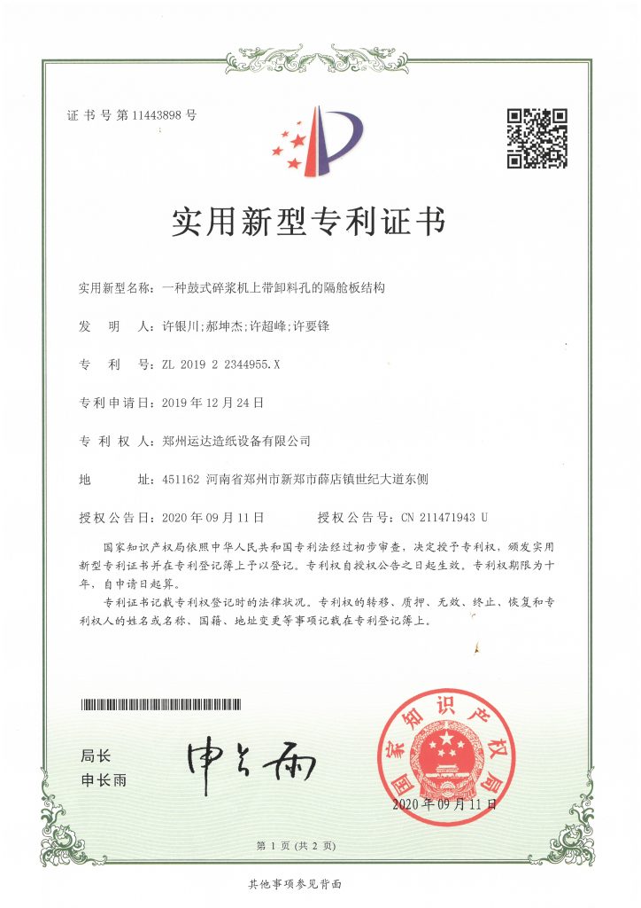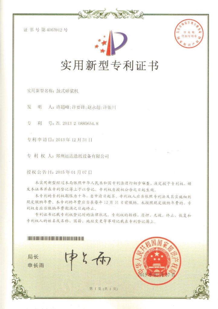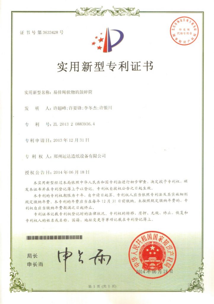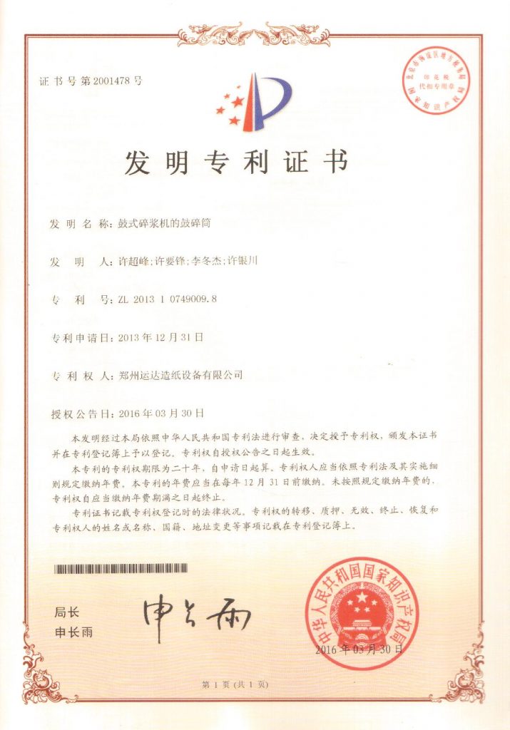 鼓式碎漿機(jī)的鼓碎筒,專(zhuān)利號(hào):ZL201310749009.8