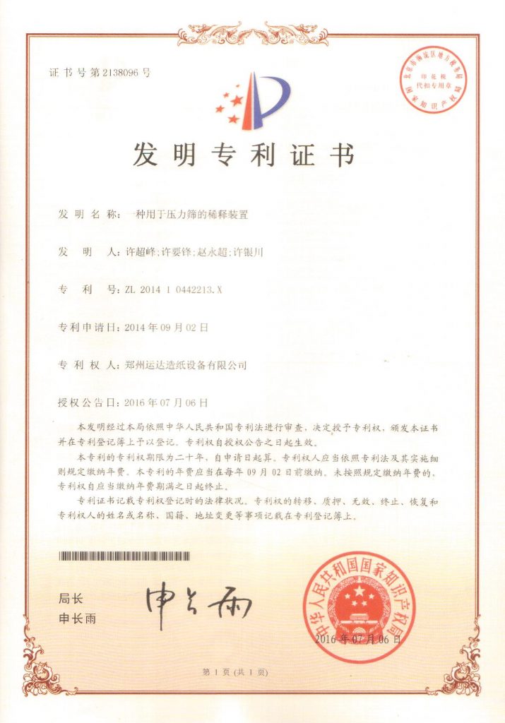 一種用于壓力篩的稀釋裝置,專(zhuān)利號(hào):ZL201410442213.X