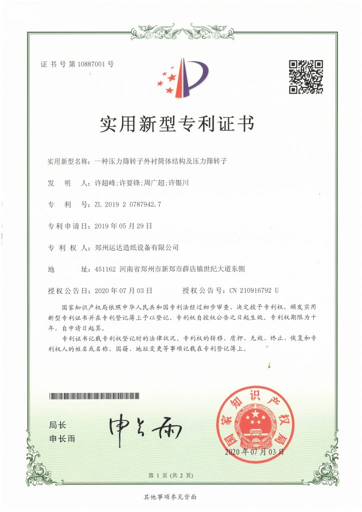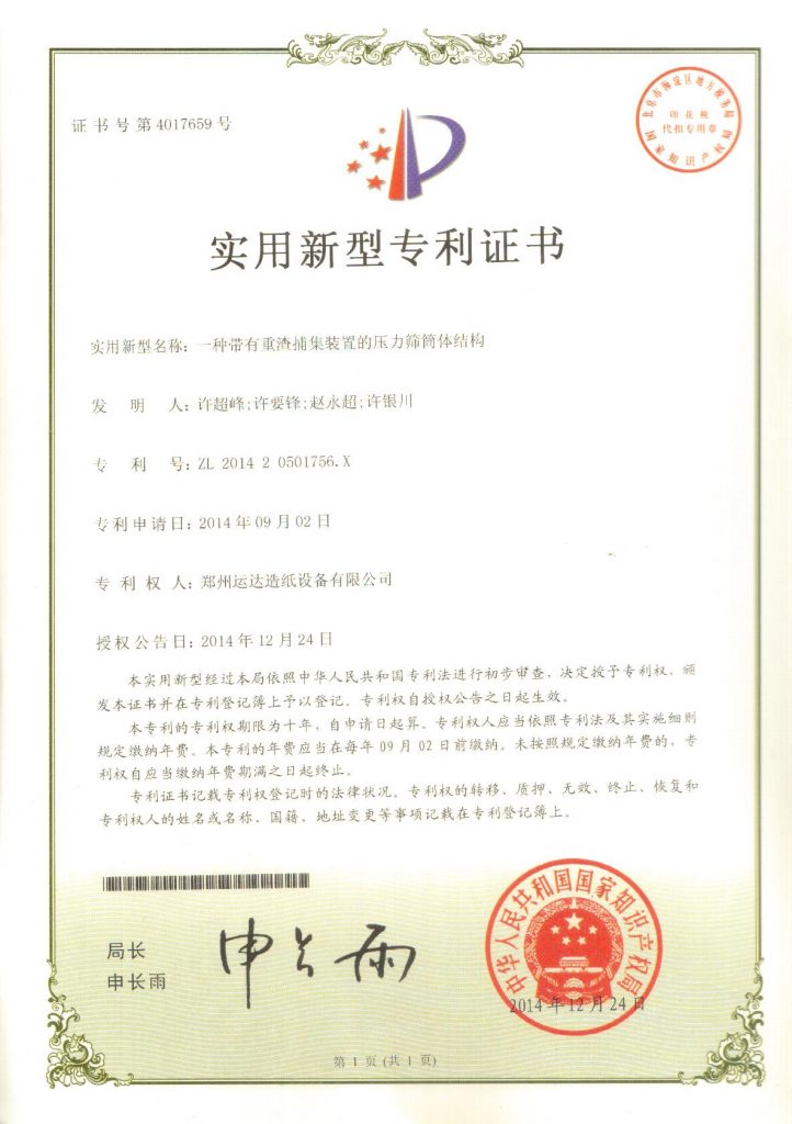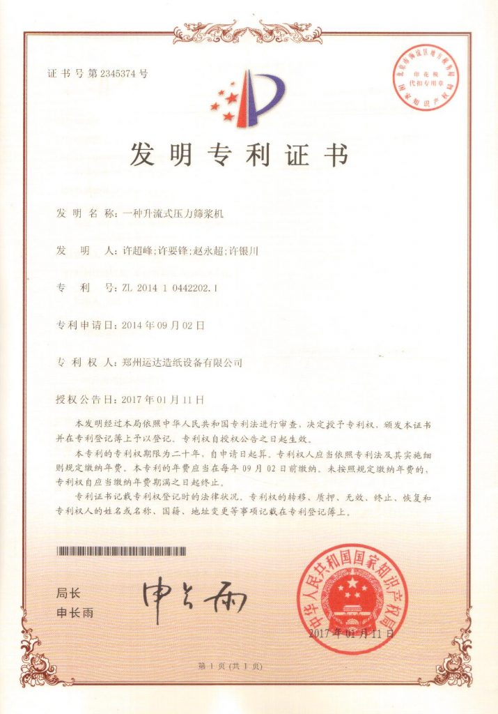 一種升流式壓力篩漿機(jī),專(zhuān)利號(hào):ZL201410442202.1