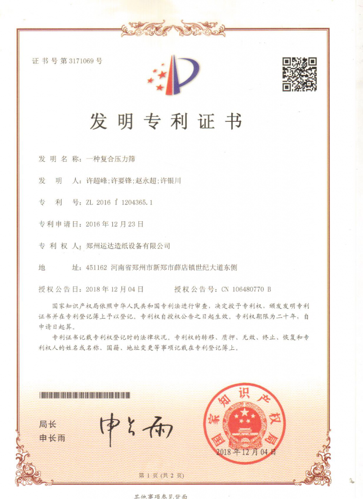 一種復(fù)合壓力篩,專(zhuān)利號(hào):ZL201611204365.1
