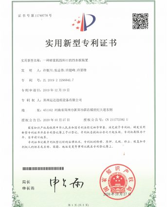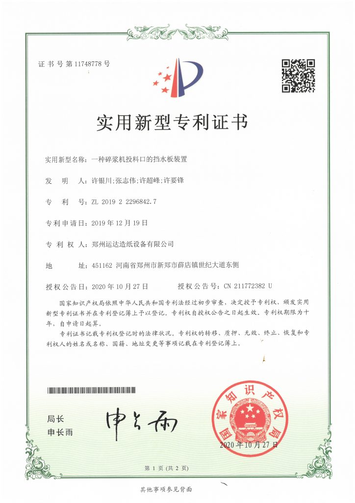 查看證書(shū)>>一種碎漿機(jī)投料口的擋水板裝置ZL201922296842.7