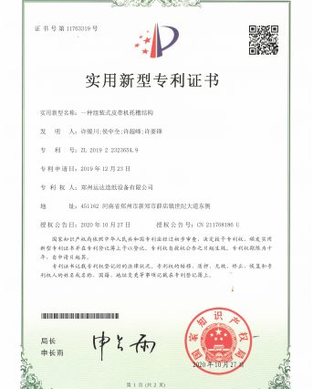 查看證書(shū)>>一種組裝式皮帶機(jī)托槽結(jié)構(gòu)ZL201922323654.9