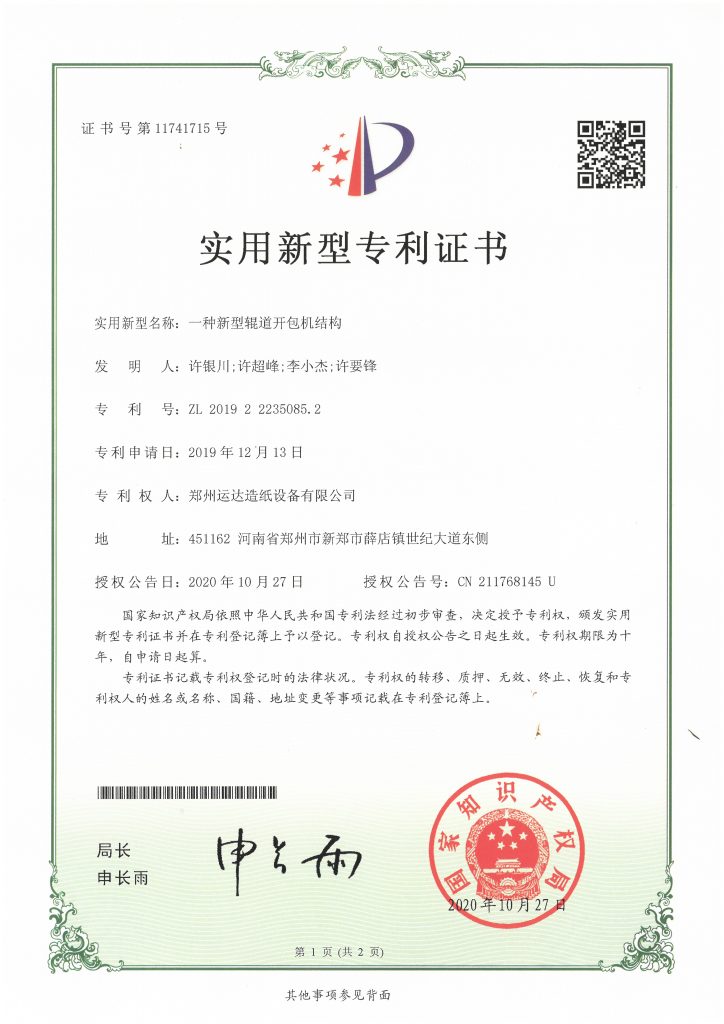 查看證書(shū)>>一種新型輥道開(kāi)包機(jī)結(jié)構(gòu)ZL201922235085.2