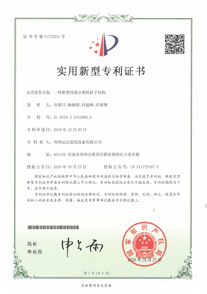 查看證書(shū)>>一種新型排渣分離機(jī)轉(zhuǎn)子結(jié)構(gòu)ZL201922310589.6