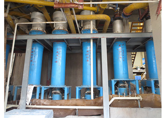 該設(shè)備合理設(shè)計(jì)了上部進(jìn)料三通和出漿管,分離錐體長(zhǎng),可在漿料濃度較高的情況下獲得良好的分離除渣效果。