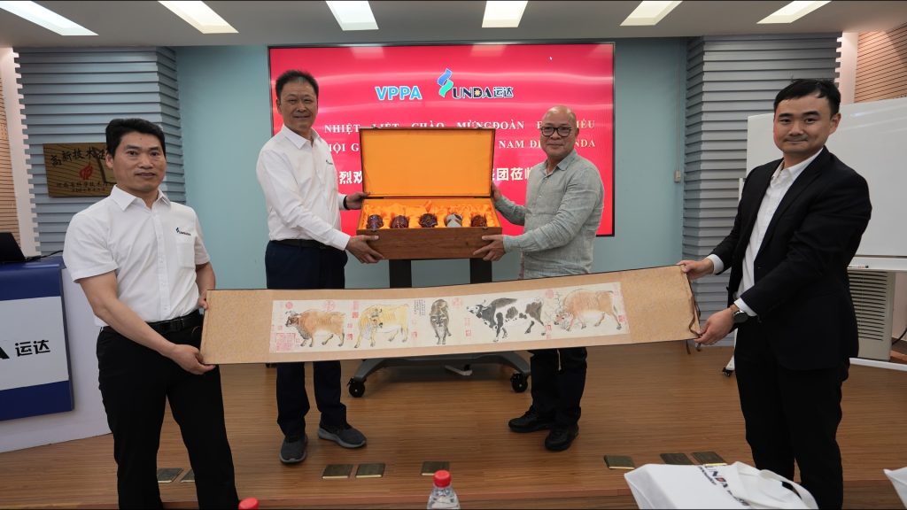 參觀結(jié)束后,越南造紙協(xié)會代表團(tuán)在公司三樓多媒體會議室進(jìn)行了技術(shù)交流。通過孫軍偉的介紹,來訪嘉賓更深入地了解了運(yùn)達(dá)的整體發(fā)展情況、市場業(yè)績及在i-CTMP高得率制漿技術(shù)和i-OCC廢紙漿技術(shù)領(lǐng)域的研發(fā)和生產(chǎn)情況。會上,越南制漿造紙協(xié)會會長黃中山、亞洲建筑貿(mào)易有限公司總經(jīng)理何玉統(tǒng)與運(yùn)達(dá)總經(jīng)理許超峰互贈禮物,表達(dá)了雙方進(jìn)行長久合作和交流的深切意愿。