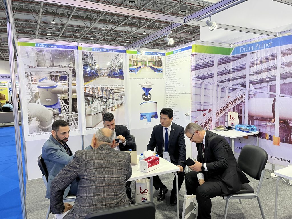 展會(huì)期間,運(yùn)達(dá)展位E07賓朋滿座,人氣滿滿,前來咨詢、洽談的客戶絡(luò)繹不絕。眾多中東和北非地區(qū)觀展嘉賓及制漿企業(yè)參會(huì)代表光臨運(yùn)達(dá)展位,對(duì)運(yùn)達(dá)制漿設(shè)備及專業(yè)技術(shù)服務(wù)進(jìn)行深入咨詢、了解。運(yùn)達(dá)公司現(xiàn)場工作人員與來訪客戶進(jìn)行了廣泛交流和探討,對(duì)客戶所提出的問題做了詳細(xì)的解答和展示。