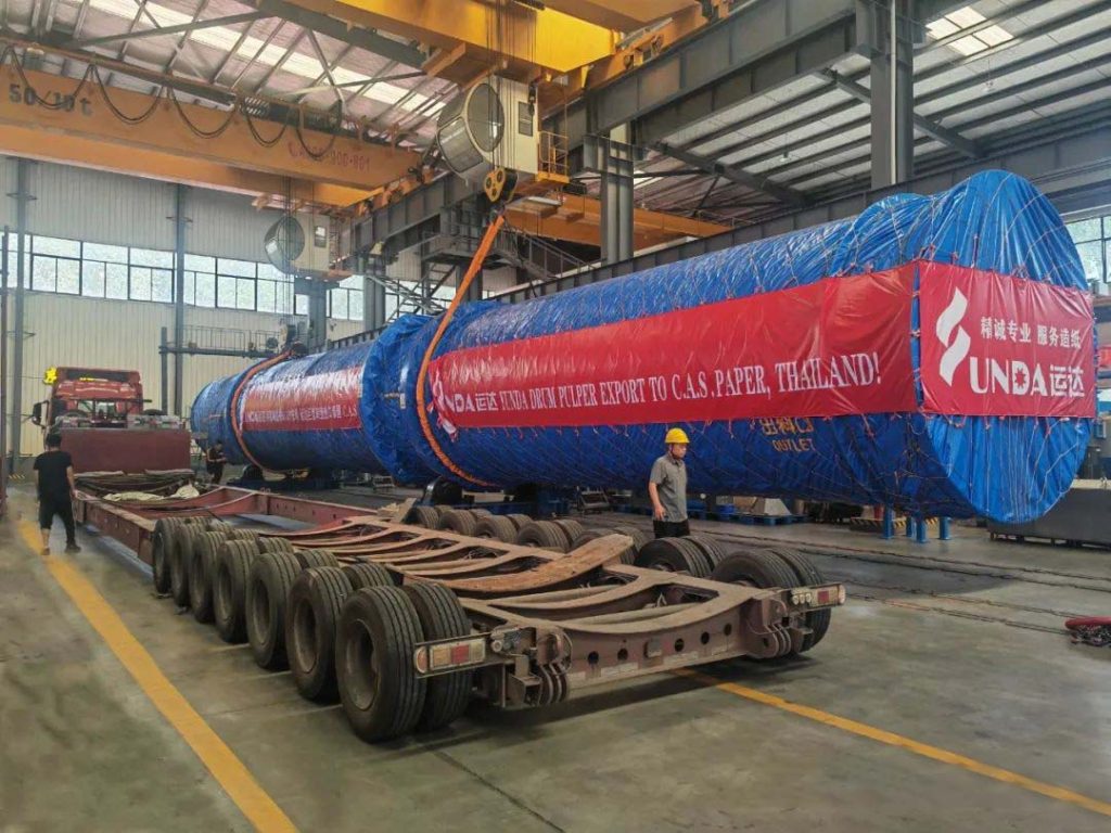 作為泰國 C.A.S. 新聞紙改產(chǎn)包裝紙整線改造項(xiàng)目的核心設(shè)備,本次交付的鼓式碎漿機(jī)運(yùn)輸總長約 32 米,運(yùn)輸總高度約 4.2 米;該項(xiàng)目的鏈板輸送機(jī)、散包機(jī)、高濃除渣器、砂石分離器、D 型碎漿機(jī)、纖維分離機(jī)、中濃篩、磨漿機(jī)及低濃除渣器均由鄭州運(yùn)達(dá)提供并已提前發(fā)貨完畢。